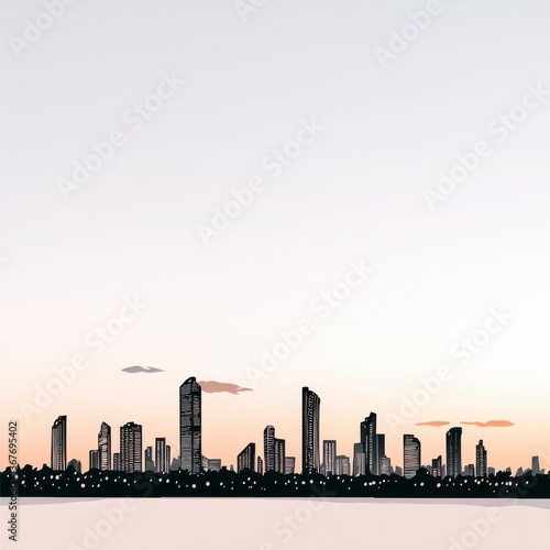 © siriwan, Fototapeta premium City Skyline Silhouette at Dawn Pastel Sky Minimalist Design