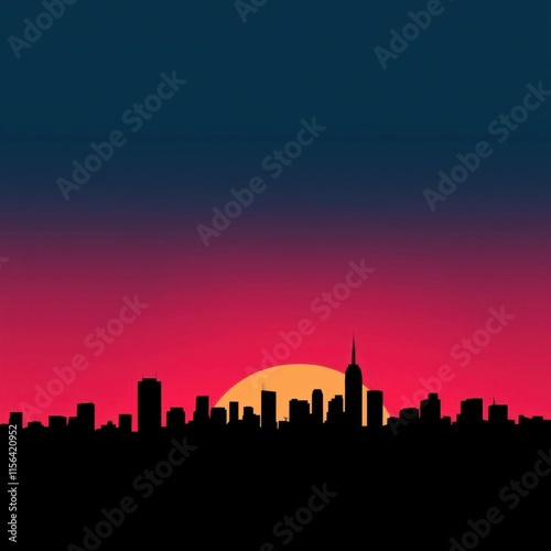 © Pixel Sage, Fototapeta premium City skyline silhouette at dusk with vibrant gradient background. generative ai. skyline silhouette. cityscape illustration architecture city