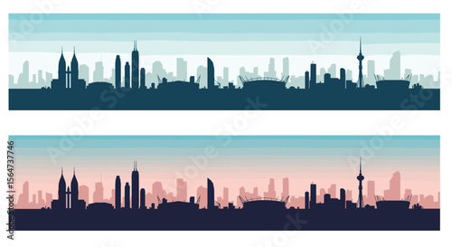 © Rasheda, Naklejka premium City Skyline Silhouette Vector Graphic Urban Landscape