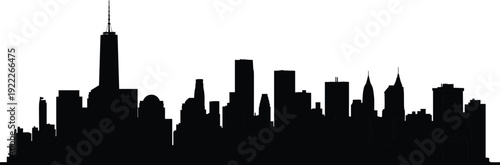 Fototapeta premium City skyline silhouette vector, modern urban skyscraper buildings panorama illustration isolated on white background