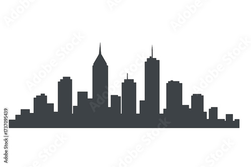 © Lenam, Naklejka premium City skyline silhouette vector. Urban landscape for cityscape banner or header. Downtown metropolis architecture background. Modern flat graphic design element on white.