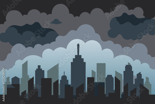 Naklejka premium City skyline silhouette with buildings and towers against a cloudy sky at sunset