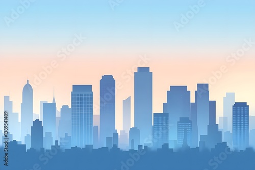 Fototapeta premium City skyline silhouette with buildings in blue tones against a gradient sky.