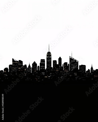 Naklejka premium City skyline silhouette with glowing windows on plain white background
