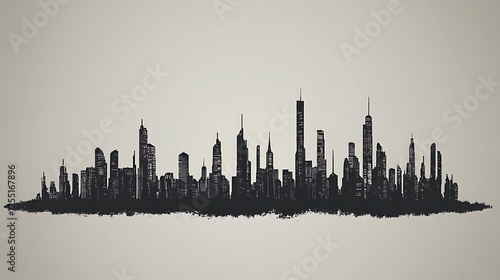 © Raffaza, Naklejka premium City skyline sketch, urban landscape, line art, illustration, background use