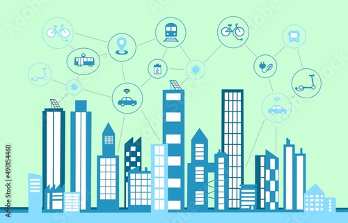 Fototapeta premium city skyline, Smart City, Connected City, Connected transportation