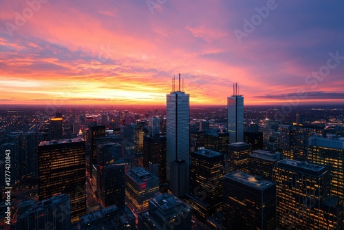 © Kativo, Fototapeta premium City Skyline Sunset Aerial View