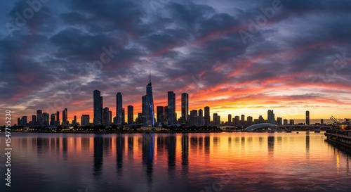 © Gunung, Fototapeta premium City skyline sunset panorama