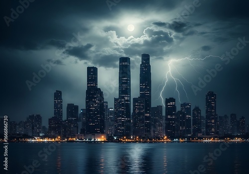 © Sultan, Fototapeta premium City skyline under a stormy night