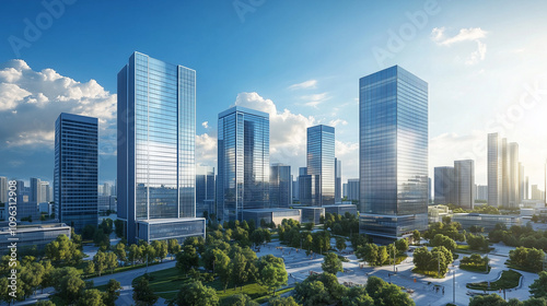 Fototapeta premium City Skyline under Blue Sky and White Clouds