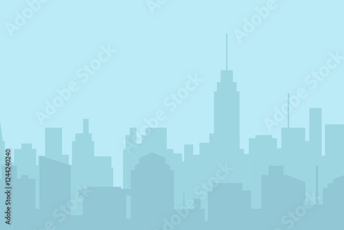 Naklejka premium City skyline vector illustration. Landscape in flat style. City silhouette. Cityscape backgrounds. Daytime city skyline.