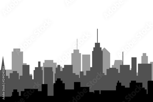 Naklejka premium City skyline vector illustration. Landscape in flat style. City silhouette. Cityscape backgrounds. Daytime city skyline.