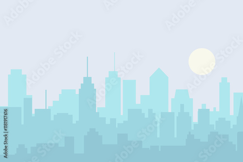 © Volodymyr, Naklejka premium City skyline vector illustration. Urban landscape cityscape in flat style. cCity silhouette. Cityscape backgrounds. Daytime city skyline.