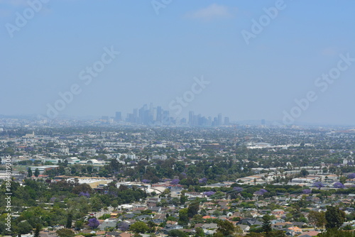 © Paul, Fototapeta premium City Skyline Viewed From a Hillside on a Clear Day With Lush Greenery in the Foreground