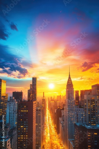 © Atlas, Obraz premium City skyline with dramatic sunset hues