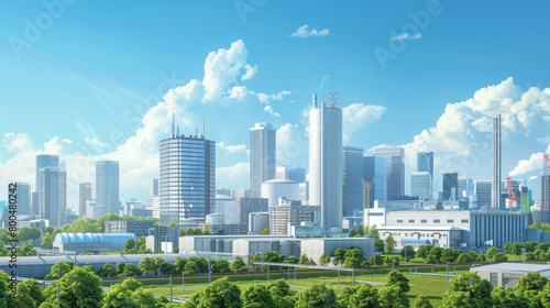 Obraz premium City Skyline with Integrated Nuclear Waste Facility