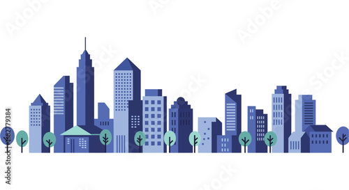 Naklejka premium City skyline with tall buildings and trees in a simple graphic illustration style