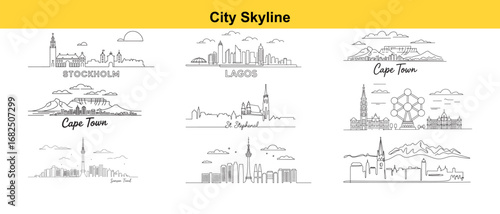 Obraz premium City Skylines Line Art Illustrations of Various World Cities Minimalist Black...