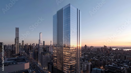 Obraz premium City skyscraper in sunset light, symbolizing vision, opportunity, and enterprise progress