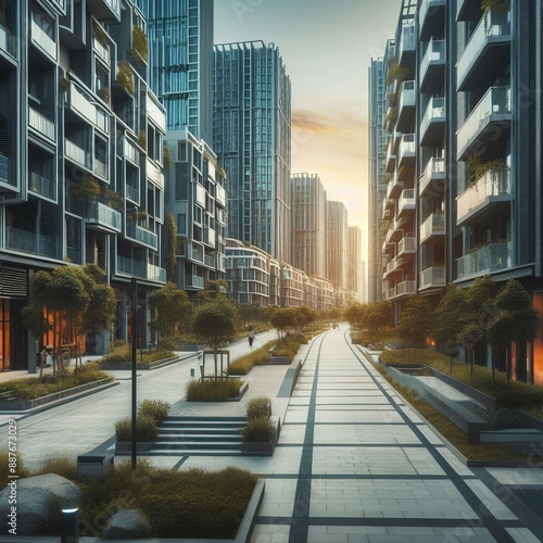 © Marco, Obraz premium city skyscrapers at sunrise