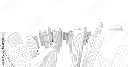 Fototapeta premium City skyscrapers sketch, architecture 3d illustration.