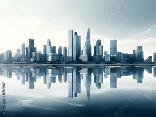 © Akilmazumder, Fototapeta premium City square and skyline with modern buildings scenery, Aerial view of a business city and commercial area building, high rise building for business environment