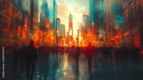 © Ibnu, Naklejka premium City Street Sunset Urban Crowd Motion Blur