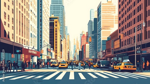 © Anggita, Obraz premium City street with bustling crowd, and skyscrapers.