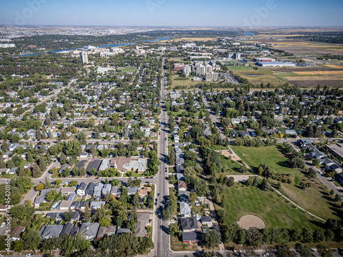 © Scott Prokop, Fototapeta premium City street with houses and a park