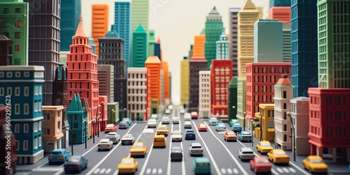 Obraz premium City street with skyscrapers made from plasticine 3d