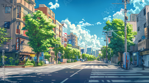 Fototapeta premium city streets landscape anime style Stock Illustration