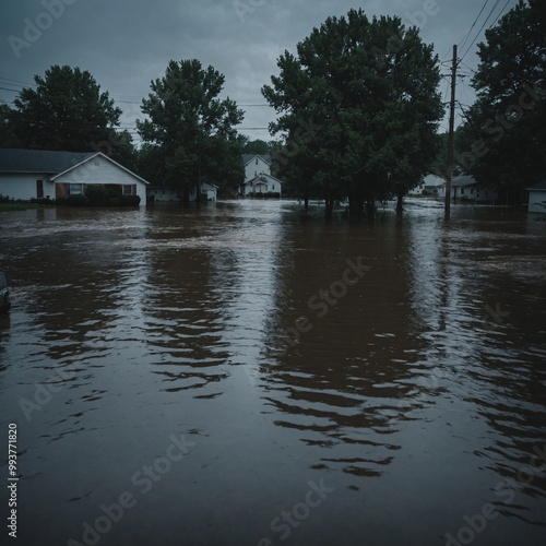 Fototapeta premium City streets turned into rivers after severe rainstorm with vehicles and infrastructure submerged