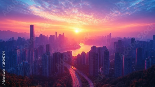 © muhammad, Fototapeta premium City Sunrise Aerial View