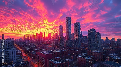 © kinkin, Fototapeta premium City Sunrise Aerial View