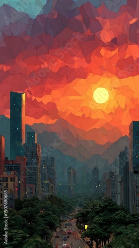 © Yogi, Fototapeta premium City Sunset Low Poly.