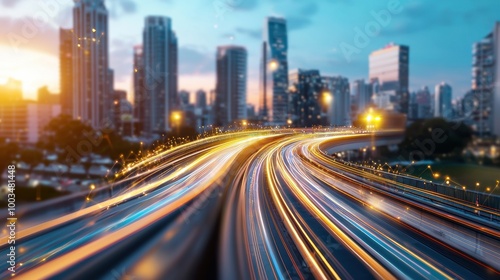 Fototapeta premium City Traffic Flow at Sunset with Blurry Lights