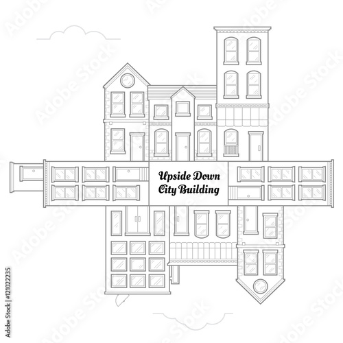 © vintagio, Fototapeta premium City Upside Down Drawing concept with outline linear style