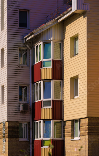 Obraz premium City view, modern buildings and skyscrapers against the blue sky.
