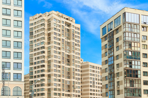 © Kozlik_mozlik, Naklejka premium City view on a sunny day. Modern houses against the blue sky.