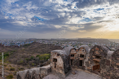© explorewithinfo, Fototapeta premium city view with ancient fort wall and dramatic sky at evening from different angle