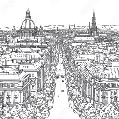 © Anha, Fototapeta premium Cityscape aerial view majestic buildings grand avenue