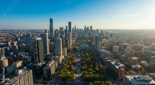 Fototapeta premium Cityscape Aerial View of Downtown with Park and Skyline on a Clear Day
