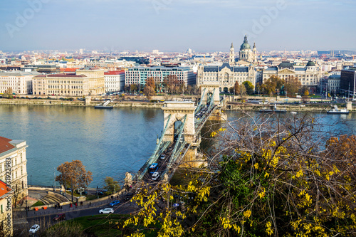 Obraz premium Cityscape, aerial view over the chains bridge and Danube river. Budapest,...