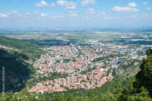 © drutska, Fototapeta premium cityscape against mountain range and sky