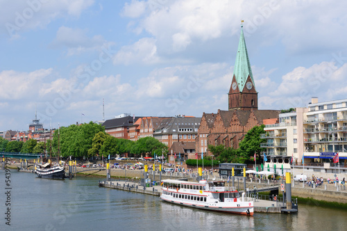 Obraz premium Cityscape along the Weser river in Bremen, Germany