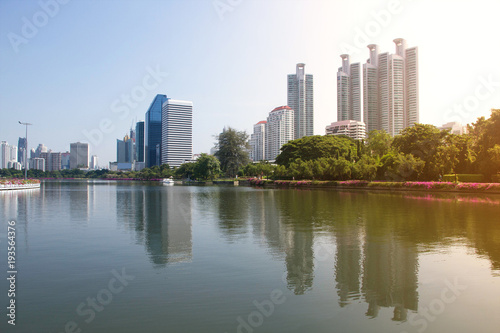 © i am way, Naklejka premium Cityscape and river in Bangkok Thailand
