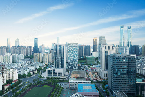 © 安琦 王, Naklejka premium cityscape and skyline of shanghai from empty urban road