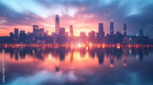 Fototapeta premium Cityscape at Dawn: A Stunning Reflection of Urban Lights