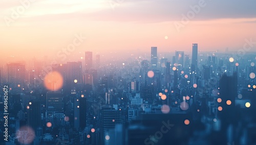 © Ainun, Fototapeta premium Cityscape at dawn, soft focus