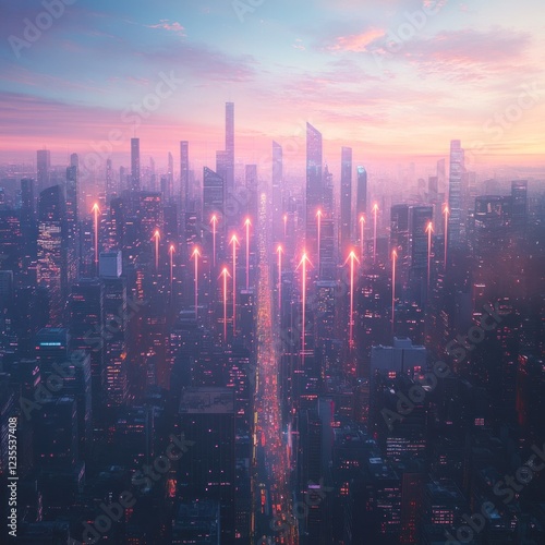 © Ari, Fototapeta premium Cityscape at Dawn: Upward Trajectory of Urban Growth